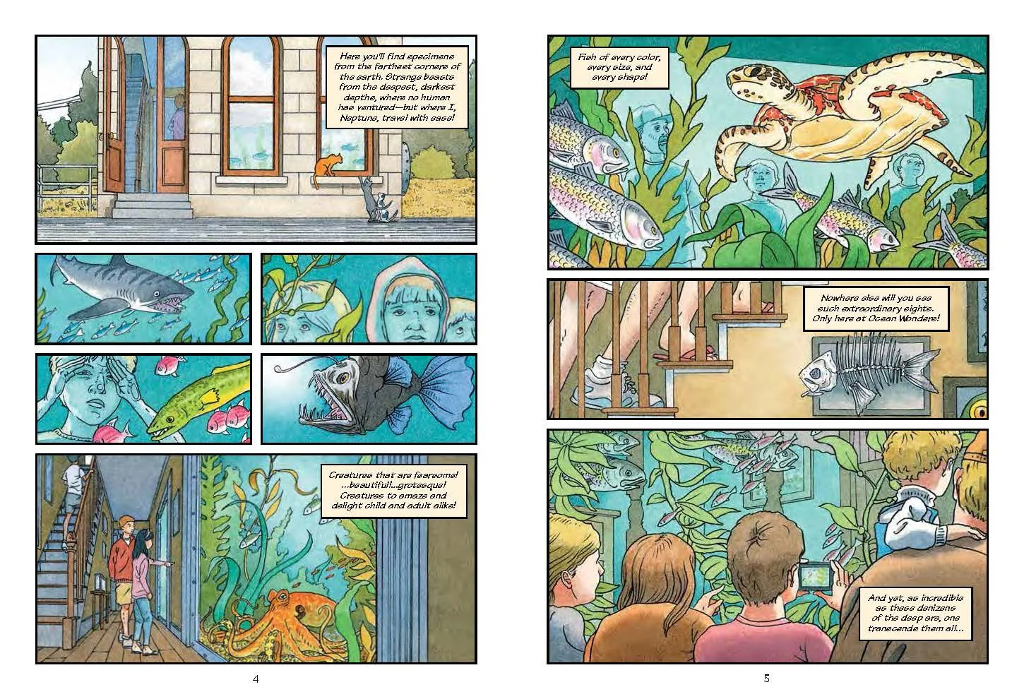 The triple Caldecott winner David Wiesner brings his rich visual imagination and trademark artistry to the graphic novel format in a unique coming-of-age tale that begins underwater. A young mermaid, called Fish Girl, in a boardwalk aquarium has a chance encounter with an ordinary girl. Their growing friendship inspires Fish Girl's longing for freedom, independence, and a life beyond the aquarium tank. Sparkling with humor and brilliantly visualized, Fish Girl's story will resonate with every young person facing the challenges and rewards of growing up.