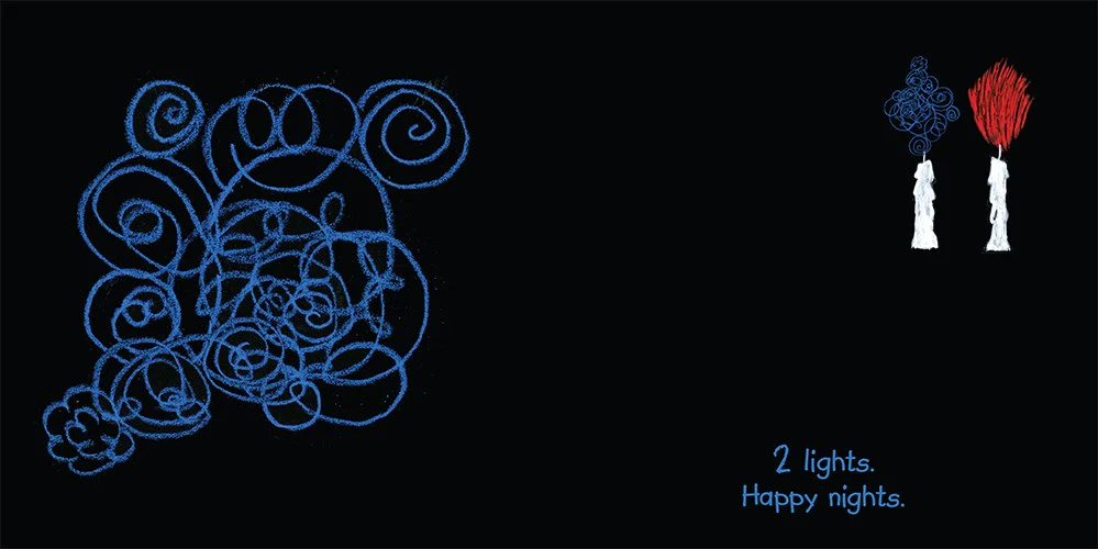 Follow along as, one by one, eight bright colors light up the dark Hanukkah nights. Sponge or spatter, scrape or stamp — each light is painted in a unique style. Learn how to paint Hanukkah lights in different textures, too!